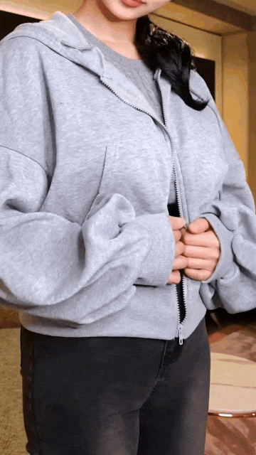 “Why should I, like, fix it~” she giggles, pressing her full bosom into your shoulder as she sinks in to whisper against your ear. A bosom prominent enough to bring you back to lucidity long enough to push her off your body with as much strength as your slender arms can muster “Lily! Your boobies are growing too!” you point in a ditzy panic, pointing to the substantial breasts bulging against the front of her jacket, steadily pushing the confines of a piece designed for Lily’s usually modest boobs, not the swelling melons blossoming on her chest “Tight~” she whimpers, clawing at her zipper to free the increasing pressure over her chest until - with a soft click - the jacket does the job for her, tearing open to free her growing tits. Each melon hanging round and proud off her chest, gently swaying under their own, unrestrained weight, kept modest only by a gray sweater that’s been stretched so tightly it fits her like a crop top that barely reaches her underboob.